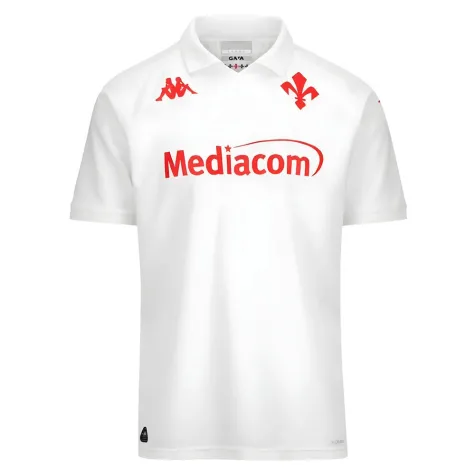 The Fiorentina 2024-2025 Kappa Away Shirt blends tradition with advanced performance, crafted for fans and players alike. This game shirt, featuring KOMBAT 2025 technology, is made from recycled interlock fabric equipped with HYDRO-WAY PROTECTION for optimal moisture management. Its regular fit, short sleeves, and jacquard rib collar offer both style and comfort. Jacquard fabric details enhance the front, back, and sleeves, while the iconic Omini logos are heat-transferred onto the chest and sleeves. A 3D silicone patch of the Fiorentina crest on the chest adds a premium touch, complemented by heat-transferred lettering on the back and inner collar. A true showcase of ACF Fiorentina pride.