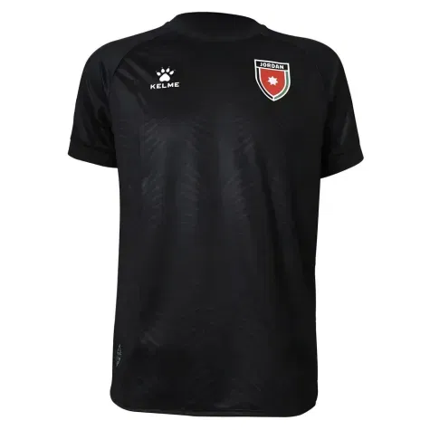 The Jordan 2024-2025 Third Shirt in black is designed for peak performance and standout style. Constructed from lightweight, breathable fabric, it features moisture-wicking technology to keep players cool and comfortable. The shirts sleek black base is accented by subtle patterns, bringing a modern edge to the design. The iconic Kelme logo and Jordans national team crest are printed on the chest with precision detailing. With a classic crew neck and a streamlined fit, this third kit embodies both tradition and innovation, making it an essential for Jordan football fans.