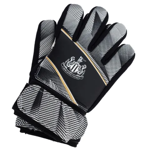Black and white goalkeeper gloves featuring the Newcastle crest in white