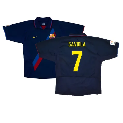 Official Javier Saviola football shirt. This is the Barcelona 2003-04 Third Shirt ((Very Good) XXL) which is manufactured by Nike and is available in all Adult sizes.