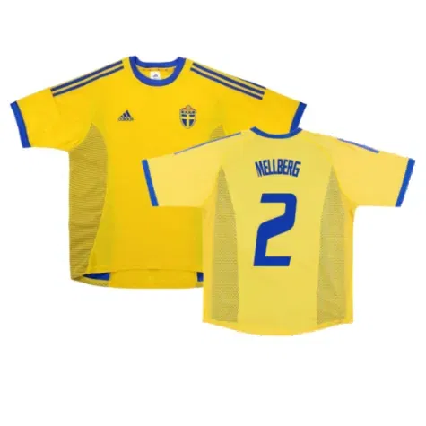 Official Olof Mellberg football shirt. This is the Sweden 2002-03 Home Shirt ((Very Good) S) which is manufactured by Adidas.