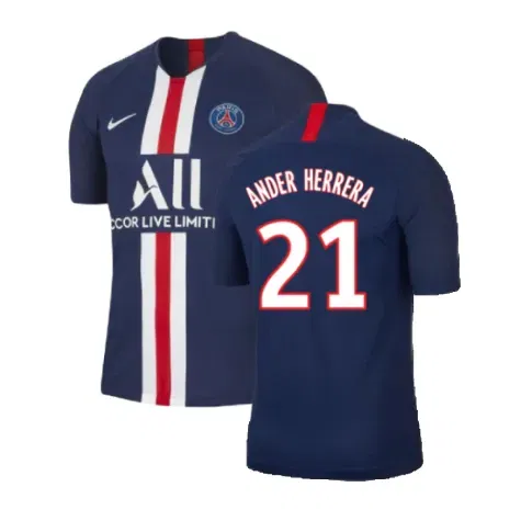 Official Ander Herrera football shirt. This is the PSG 2019-20 Home Nike Vaporknit Shirt ((Mint) S) which is manufactured by Nike.