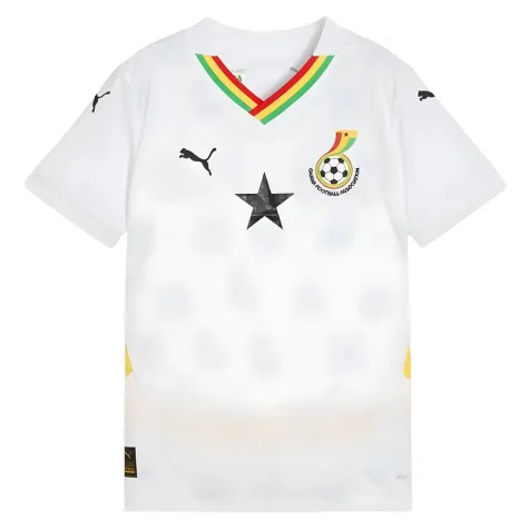 Show your passion for the Black Stars in this 2024-2025 kids home jersey. Featuring a V-neck construction, Ghana badge, and our dryCELL technology, it's perfect for cheering at Accra Sports Stadium and celebrating every thrilling moment.