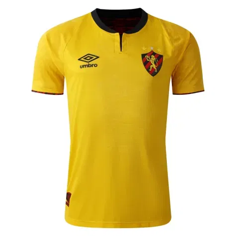 The Sport Recife 2024-2025 away kit is yellow, a nod to the club crest's 1920 lion debut. The shirtboasts a watermark with three lions and red-black sleeve graphics.
