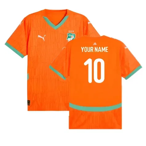 Official Your Name football shirt. This is the NEW Ivory Coast Home Shirt for the 2024-2025 season which is manufactured by Puma and is available in all Adult sizes.