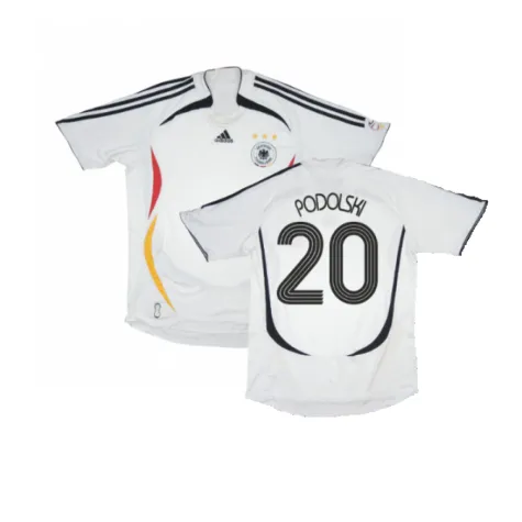 Official Lukas Podolski football shirt. This is the Germany Home Shirt for the 2006-07 season which is manufactured by Adidas.