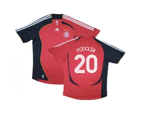 Official Lukas Podolski football shirt. This is the Germany Away Shirt for the 2006-08 seasons which is manufactured by Adidas.