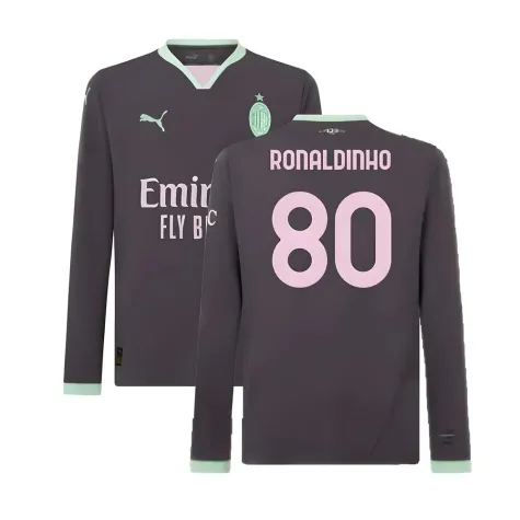 2024-2025 AC Milan Third Long Sleeve Shirt (Ronaldinho 80)