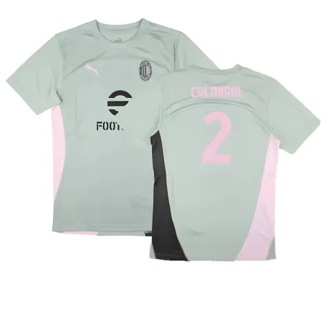 Official Davide Calabria football shirt. This is the NEW AC Milan Training Shirt (Green Fog) for the 2024-2025 season which is manufactured by Puma and is available in all Adult sizes.