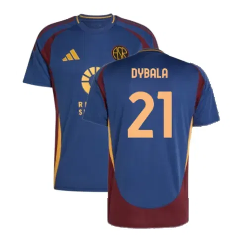 Official Paulo Dybala football shirt. This is the Roma Third Shirt for the 2024-2025 season which is manufactured by Adidas and is available in all Adult sizes.