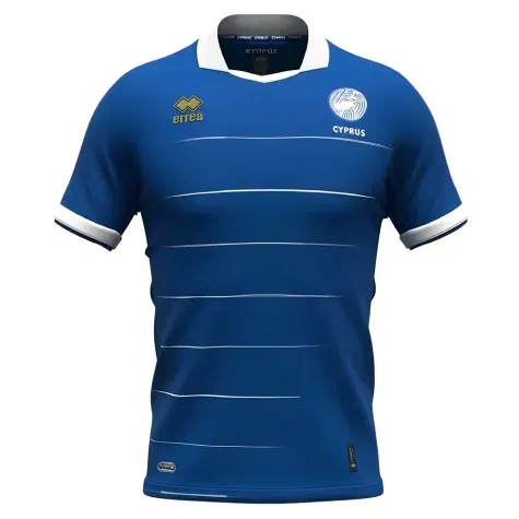 The Cyprus National Team 2024-2026 away jersey by Erre features an eye-catching design with reversed colours from the home kit: light blue with white accents. The "pinstripe" horizontal gradient adds a touch of elegance, while "Cyprus" in Greek and English inside the collar strengthens the bond with the nation.