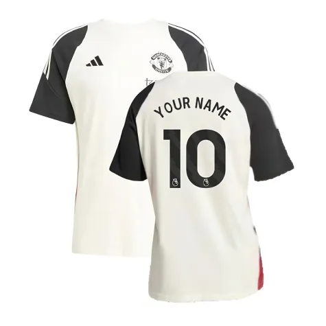 Official Your Name football shirt. This is the NEW Man Utd Training Tee (Off White) for the 2024-2025 season which is manufactured by Adidas and is available in all Adult sizes.