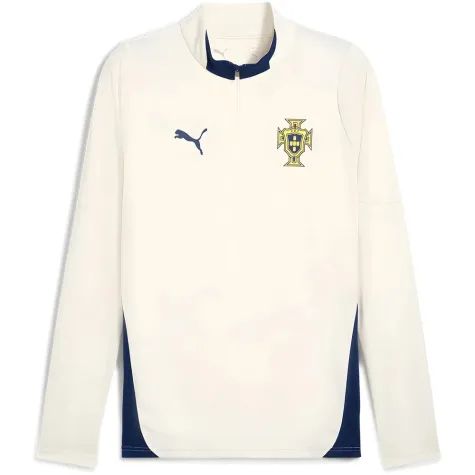 Show your support for A Selecao das Quinas as they set their sights on UEFA Nations League glory with the PUMA Portugal 2025 1/4 Zip Training Top in Sugared Almond/Persian Blue, part of PUMAs first-ever Portugal training range.