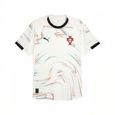 The future shines brightly in the Portugal Away Kit. Bold graphics with red and green highlights are brought to life with motion to celebrate the intersection of art, technology, and soccer in modern-day Portugal. The match-ready, Authentic version of the jersey is made with PUMAs ULTRAWEAVE fabric and features an athletic fit for elite-level performance. Mark the new era.