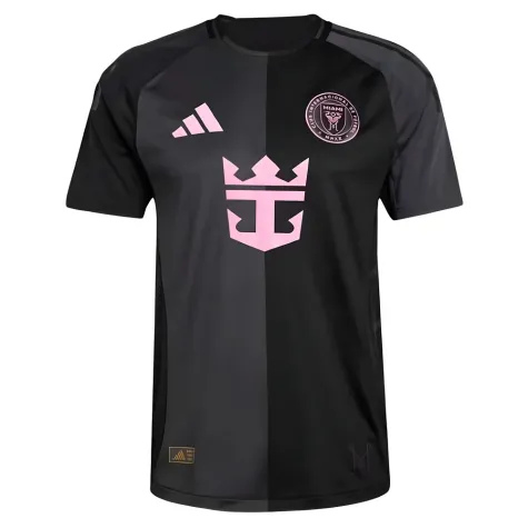 Bring Miami style to the pitch in this elegant Inter Miami CF away authentic jersey from adidas. With pink details popping against a black and carbon half-and-half design, this performance shirt exudes sophistication. Its moisture-managing AEROREADY and soft fabric are there to keep players agile. A pair of club sign-offs and a heat-applied crest show you appreciate first-class soccer. This product is made with 100% recycled materials.