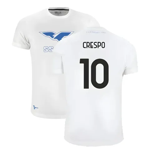 Official Hernan Crespo football shirt. This is the NEW Lazio 125th Anniversary Cotton Tee (White) for the 2024-2025 season which is manufactured by Mizuno and is available in all Adult sizes.