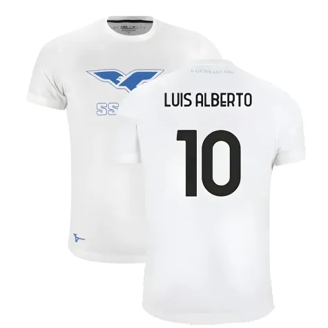 Official Luis Alberto football shirt. This is the NEW Lazio 125th Anniversary Cotton Tee (White) for the 2024-2025 season which is manufactured by Mizuno and is available in all Adult sizes.