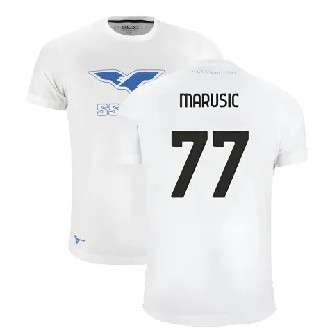 Official Adam Marusic football shirt. This is the NEW Lazio 125th Anniversary Cotton Tee (White) for the 2024-2025 season which is manufactured by Mizuno and is available in all Adult sizes.