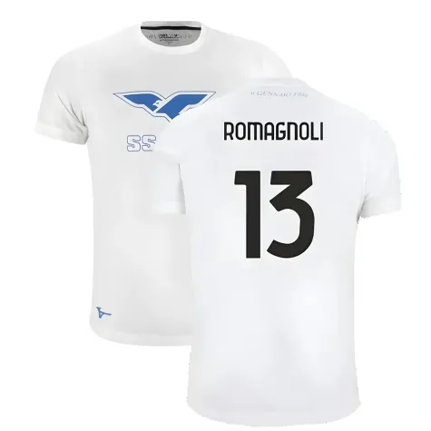 Official Alessio Romagnoli football shirt. This is the NEW Lazio 125th Anniversary Cotton Tee (White) for the 2024-2025 season which is manufactured by Mizuno and is available in all Adult sizes.