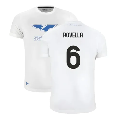 Official Nicol Rovella football shirt. This is the NEW Lazio 125th Anniversary Cotton Tee (White) for the 2024-2025 season which is manufactured by Mizuno and is available in all Adult sizes.