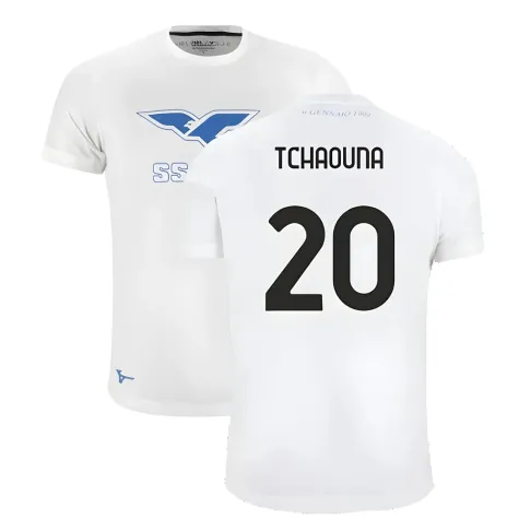 Official Loum Tchaouna football shirt. This is the NEW Lazio 125th Anniversary Cotton Tee (White) for the 2024-2025 season which is manufactured by Mizuno and is available in all Adult sizes.
