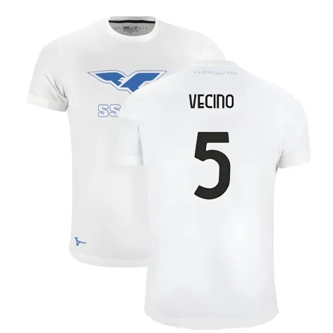 Official Matias Vecino football shirt. This is the NEW Lazio 125th Anniversary Cotton Tee (White) for the 2024-2025 season which is manufactured by Mizuno and is available in all Adult sizes.