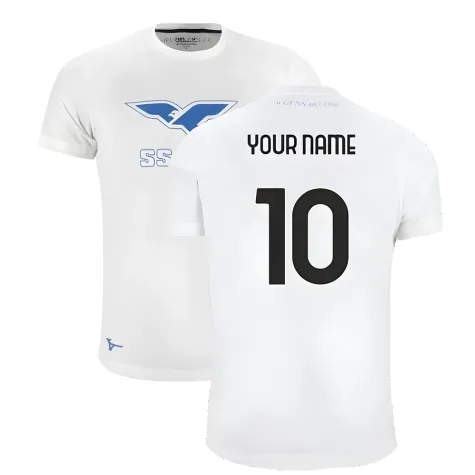 Official Your Name football shirt. This is the NEW Lazio 125th Anniversary Cotton Tee (White) for the 2024-2025 season which is manufactured by Mizuno and is available in all Adult sizes.