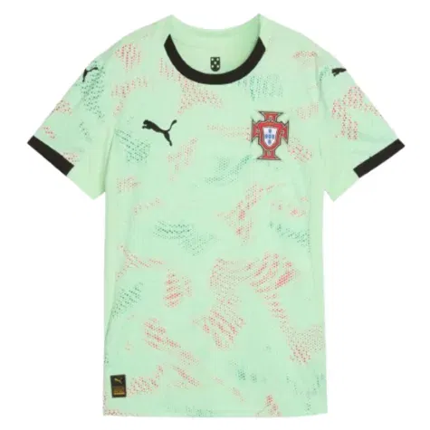 The future shines brightly in the Women's Portugal Away Kit. Bold graphics with red and green highlights are brought to life with motion to celebrate the intersection of art, technology, and football in modern-day Portugal. Designed for the fans, Replica jersey pairs the same match-worn look with a casual silhouette, details, and materials, ideal for both game day and everyday wear.