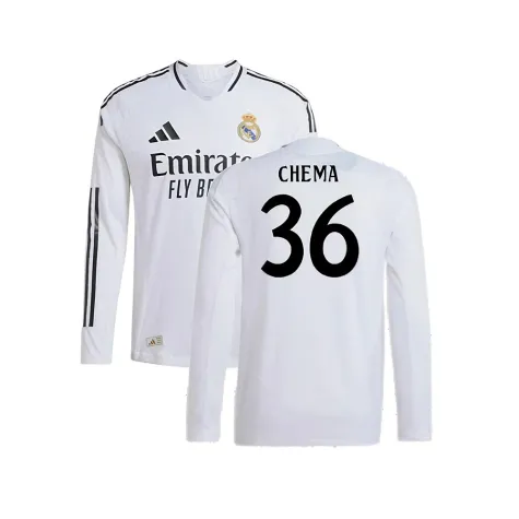 2024-2025 Real Madrid Authentic Long Sleeve Home Shirt (Chema 36)