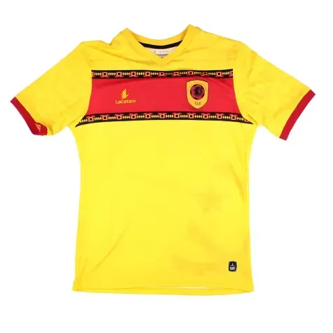 The Lacatoni Angola 2024 third football shirt builds on the home design but is a little bit different. The stripe is placed higher, and there is a large subtle flag detail on the lower left.