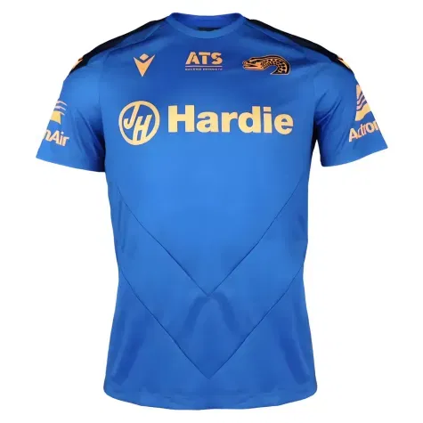 Show your support for the Parramatta Eels with this official 2025 Training T-Shirt. Designed by Macron, this lightweight and breathable tee is perfect for training sessions or cheering on your team. Stay cool and comfortable while showcasing your Eels pride in style.