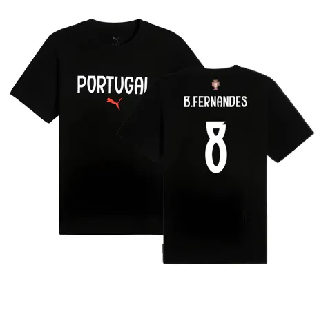 Official Bruno Fernandes football shirt. This is the NEW Portugal ftblNRGY Tee (Black) for the 2024-2025 season which is manufactured by Puma and is available in all Adult sizes.