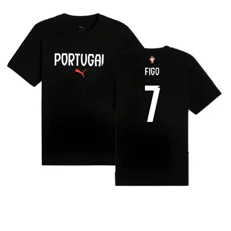 Official Luis Figo football shirt. This is the NEW Portugal ftblNRGY Tee (Black) for the 2024-2025 season which is manufactured by Puma and is available in all Adult sizes.