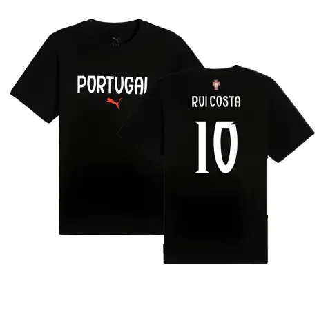 Official Rui Costa football shirt. This is the NEW Portugal ftblNRGY Tee (Black) for the 2024-2025 season which is manufactured by Puma and is available in all Adult sizes.
