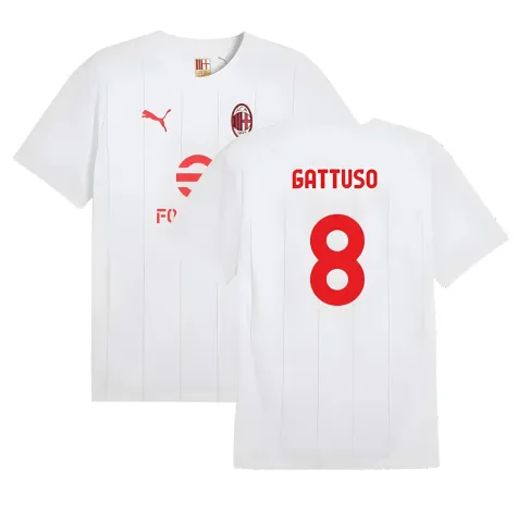 Official Gennaro Gattuso football shirt. This is the NEW AC Milan Prematch SS Jersey (White) for the 2024-2025 season which is manufactured by Puma and is available in all Adult sizes.