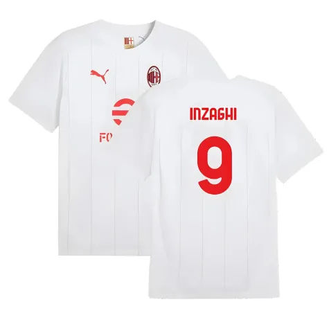 Official Filippo Inzaghi football shirt. This is the NEW AC Milan Prematch SS Jersey (White) for the 2024-2025 season which is manufactured by Puma and is available in all Adult sizes.