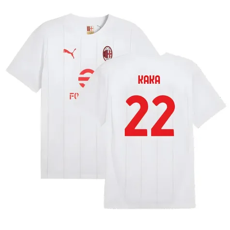 Official Kaka football shirt. This is the NEW AC Milan Prematch SS Jersey (White) for the 2024-2025 season which is manufactured by Puma and is available in all Adult sizes.