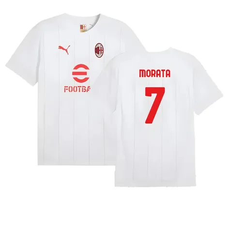 Official Alvaro Morata football shirt. This is the NEW AC Milan Prematch SS Jersey (White) for the 2024-2025 season which is manufactured by Puma and is available in all Adult sizes.