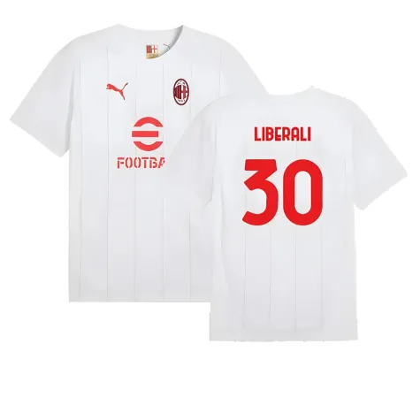 Official Mattia Liberali football shirt. This is the NEW AC Milan Prematch SS Jersey (White) for the 2024-2025 season which is manufactured by Puma and is available in all Adult sizes.