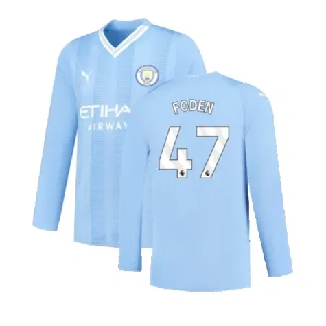 Official Phil Foden football shirt. This is the Manchester City 2023-2024 Puma Home Long Sleeved Shirt (S) (Good) which is manufactured by Puma.