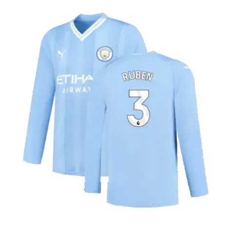 Official Ruben Dias football shirt. This is the Manchester City 2023-2024 Puma Home Long Sleeved Shirt (S) (Good) which is manufactured by Puma.