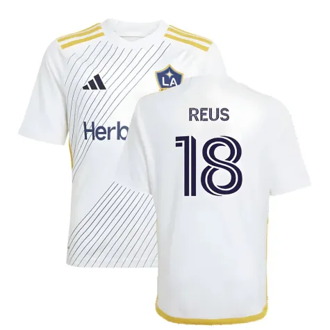 Official Marco Reus football shirt. This is the NEW LA Galaxy Home Shirt (Kids) for the 2025-2026 season which is manufactured by Adidas and is available in all Childrens sizes.