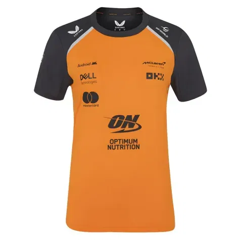 Show your support for McLaren in style with the Official McLaren 2025-2026 F1 Team Set Up T-Shirt for Ladies in Autumn Glory/Phantom. Designed for a flattering and comfortable fit, this lightweight and breathable tee features official McLaren team branding, making it perfect for race days or casual wear. The bold Autumn Glory and Phantom colourway adds a dynamic touch, ensuring a standout look for any McLaren fan.