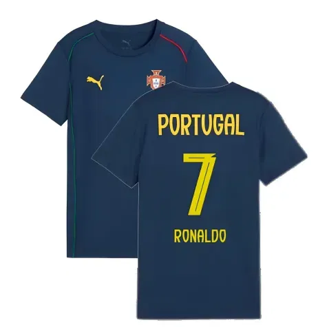 Official Cristiano Ronaldo football shirt. This is the NEW Portugal Casuals Tee (Persian Blue) - Kids for the 2025-2026 season which is manufactured by Puma and is available in all Childrens sizes.