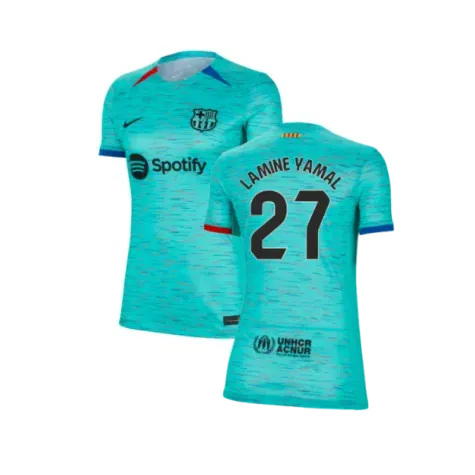 Official Lamine Yamal football shirt. This is the NEW Barcelona Third Shirt (Ladies) for the 2023-2024 season which is manufactured by Nike and is available in all Adult sizes.