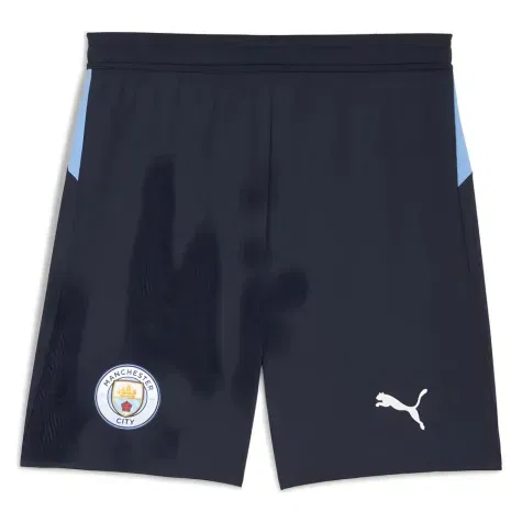 Train like a pro in the official Manchester City Football Shorts 2025/26. Featuring dryCELL sweat-wicking technology, these shorts keep you dry and comfortable during every session. The regular fit, elasticated waistband with inner drawcords, and curved side seams offer optimal movement. Finished with embroidered Manchester City and PUMA Cat logos, theyre the perfect blend of performance and team pride.