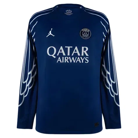 Stand out like the stars of Paris with the PSG 2024-2025 Fourth Long Sleeve Shirt. Featuring a bold new design inspired by the clubs flair and identity, this long sleeve edition offers a sleek silhouette and modern performance features. Crafted with breathable, sweat-wicking fabric, it's ideal for matchdays or everyday wear. Finished with the iconic PSG crest and Jordan brand detailing, this shirt blends football heritage with streetwear edge.