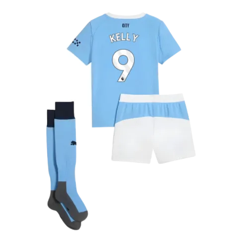 Official Chloe Kelly football shirt. This is the NEW Man City Home Mini Kit for the 2025-2026 season which is manufactured by Puma and is available in all Childrens sizes.