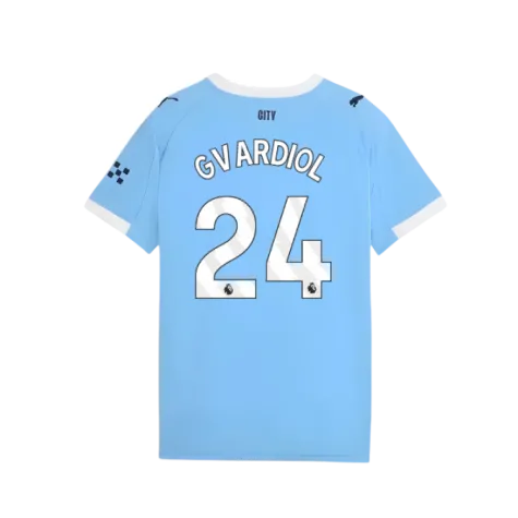 Official Josko Gvardiol football shirt. This is the NEW Man City Home Shirt (Kids) for the 2025-2026 season which is manufactured by Puma and is available in all Childrens sizes.