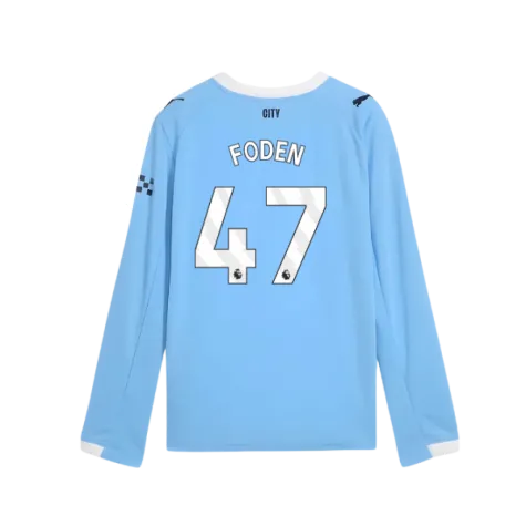 2025-2026 Man City Long Sleeve Home Shirt (Kids) (Foden 47)